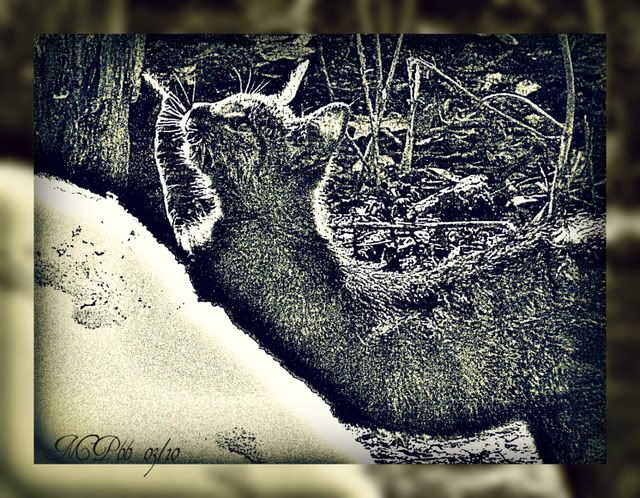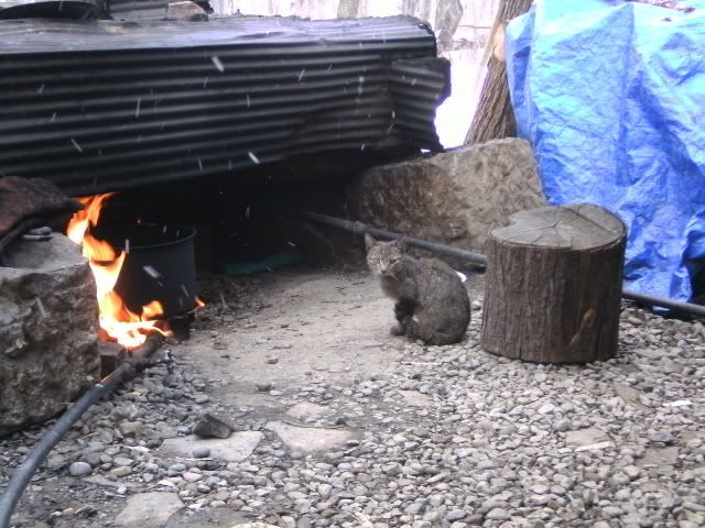 *We've been tentatively talking about the possibility of Junior coming with us, whenever we leave the tree farm and get an apartment. He's such an outdoor cat, and with all these acres to roam, I don't know if he'd take to living in "suburbia" and going in and out via a cat-flap. But we're going to see if we can get him round to the idea of coming in now and then... maybe set a litter tray here in the camper van and shut him in overnight, just to see how he feels about it. He looks a bit dubious about the idea at the moment...